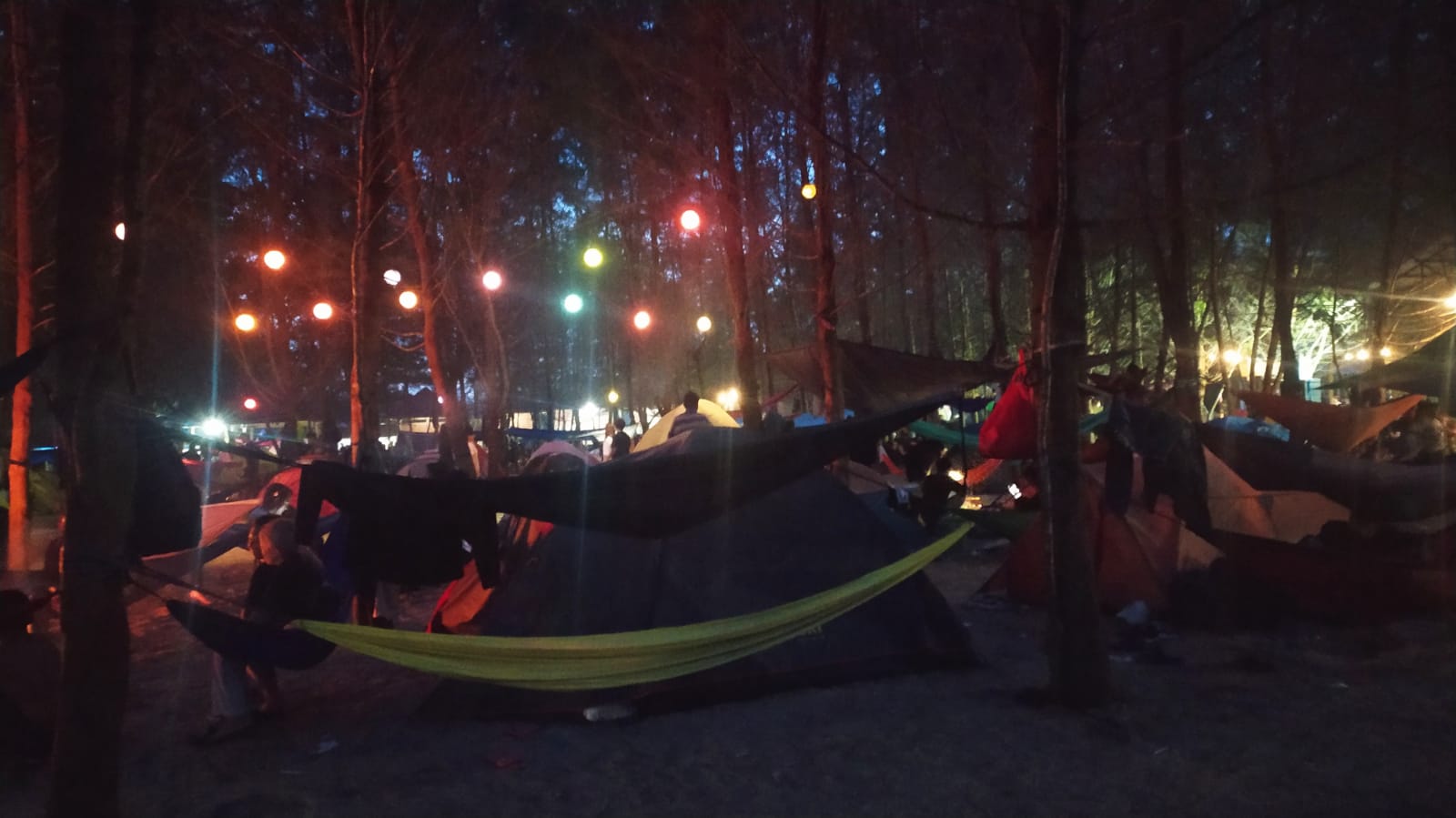 Suasana dan nuansa piknik benar-benar terlihat karena banyak rombongan bukan hanya membawa tenda serta terpal melainkan juga panci, kompor, ember hingga tabung gas 3 kiloan.