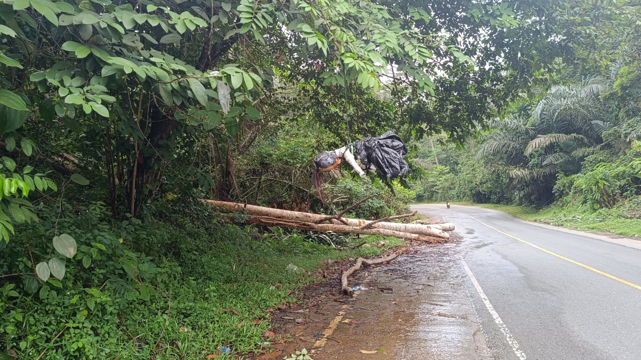 Di tepian jalan pada beberapa titik nampak pepohonan yang masih padat, namun sebenarnya formasi pepohonan di tepi jalan tidaklah tebal. Sepuluh sampai dua puluh meter dari tepi jalan sebenarnya tersembunyi kebun di balik rerimbunan pohon.