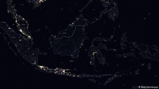 Nasa menerbitkan foto pemandangan Indonesia di malam hari. Nampak yang bersinar terang adalah Jawa, sebagian Sumatera dan wilayah negara tetangga.