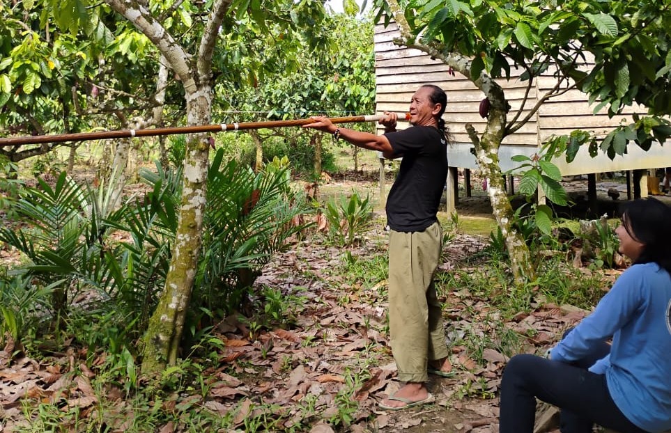 Belajar menyumpit di tengah kebun kakao
